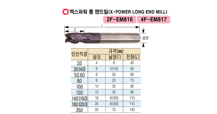 [¿ÍÀÌÁö¿ø] ¿¢½ºÆÄ¿ö ·Õ ¿£µå¹Ð (X-POWER LONG END MILL) 2.0 2F ~ 10.0 4F