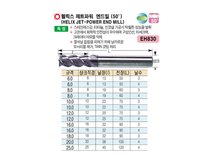 [¿ÍÀÌÁö¿ø] Ç︯½º Á¦Æ®ÆÄ¿ö ¶óÇÎ ¿£µå¹Ð(50¢ª) (HELIX JET-POWER ROUGHING END MILL) 12.0 ~ 25.0