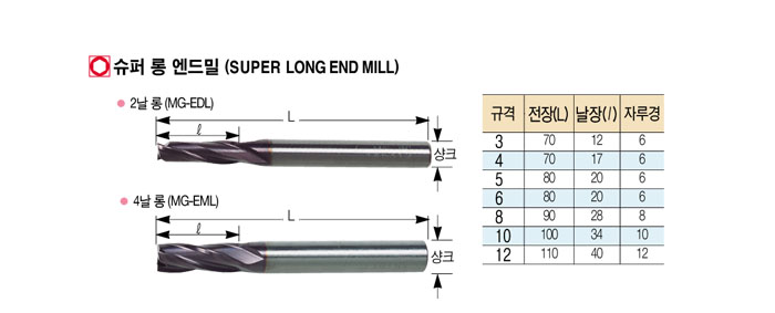 [Çѱ¹OSG] ½´ÆÛ ·Õ ¿£µå¹Ð (SUPER LONG END MILL) 8 (2³¯) ~ 12 (4³¯)