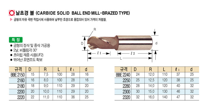 [´ë±¸ÅØ] ³¯ÃÊ°æ º¼ (CARBIDE SOLID BALL END MILL-BRAZED TYPE) BBE 2150 ~ BBE 2320