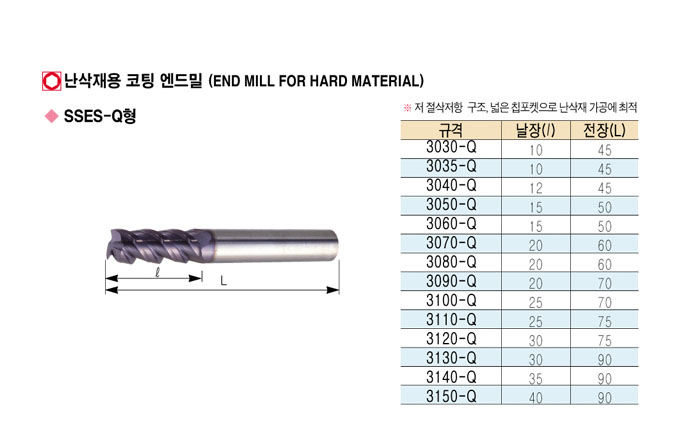 [Çѱ¹¾ß±Ý] ³­»èÀç¿ë ÄÚÆÃ ¿£µå¹Ð (END MILL FOR HARD MATERIAL) 3090-Q ~ 3150-Q