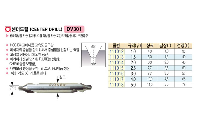 [YG]¼¾Å͵帱(CENTER DRILL)1.0mm~5.0mm