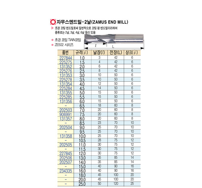[ÇϳªÅø½º] ÀÚ¹«½º¿£µå¹Ð-2³¯ (ZAMUS END MILL) 1.0 ~ 5.5
