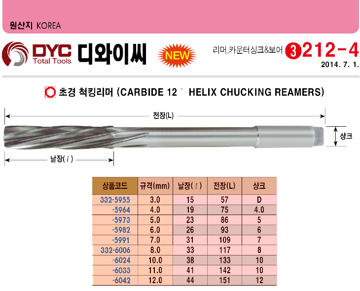 [DYC] Ãʰæ ôŷ¸®¸Ó(12µµ, »çÀÌÁî ¼±Åð¡´É : 3.0~12.0mm)(CARBIDE 12¡ÆHELIX CHUCKING REAMER)(ÁÖ¹®Àü Àç°íÈ®ÀÎ)