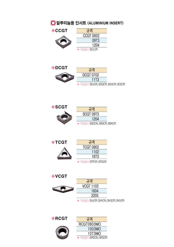 [´ë±¸ÅØ] ¾Ë·ç¹Ì´½ Àμ­Æ® (ALUMINIUM INSERT) CCGT 0602 ~ TCGT 16T3