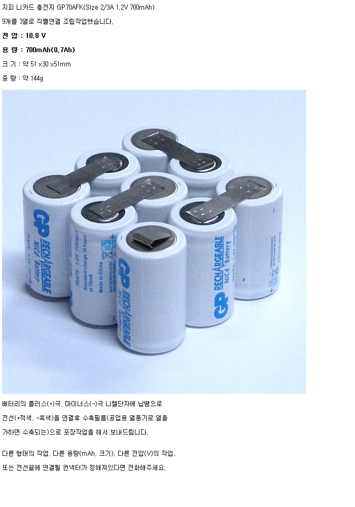 GP9N70AFK-3R(10.8V 700mAh):¼öÀÔÁß´Ü,ǰÀý!!