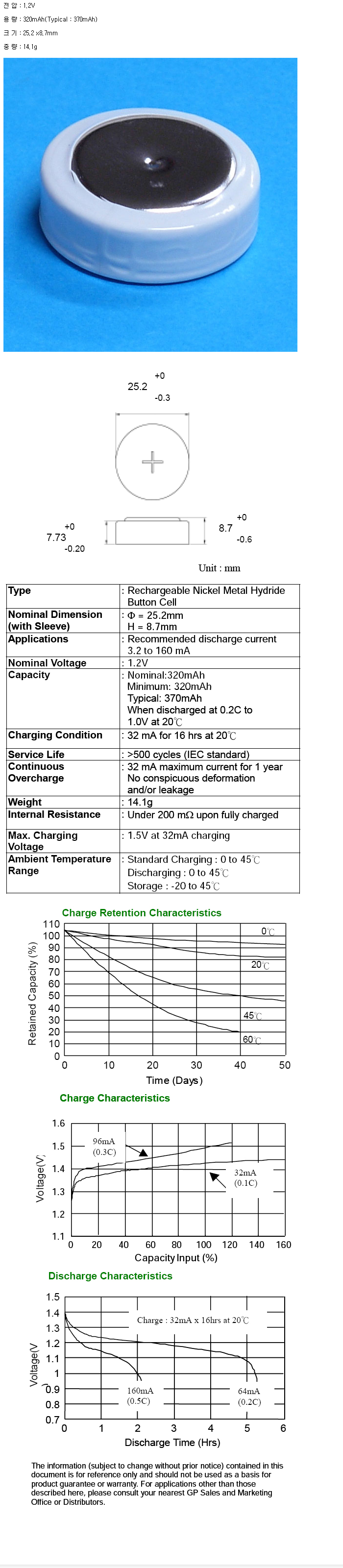 GP320BVH-WRAP(1.2V 320mAh):¼öÀÔÁß´Ü,ǰÀý!!
