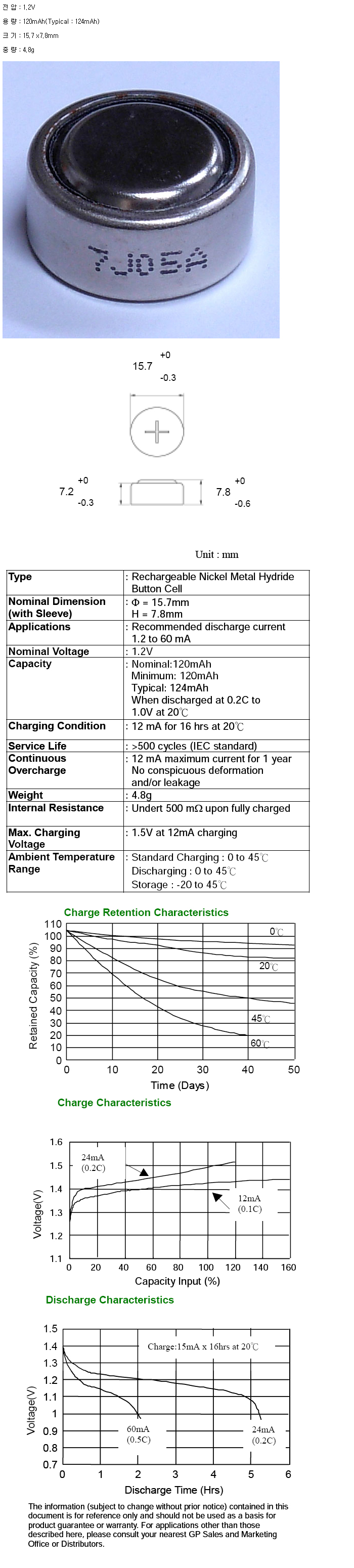 GP150BVH(1.2V 120mAh):¼öÀÔÁß´Ü,ǰÀý!!