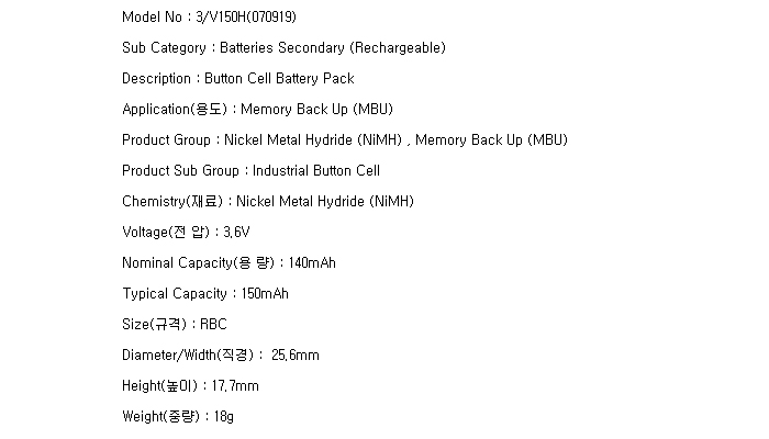 3/V150H-V3P-SU(3.6V 140mAh)=>ÆÇ¸ÅÁß´Ü!