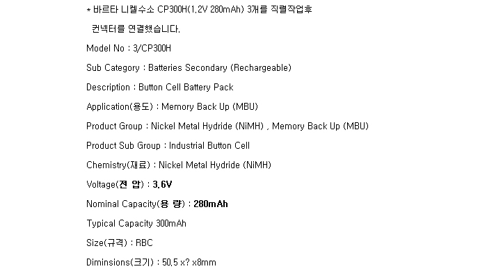 3/CP300H-TF(3.6V 280mAh)C5264RB