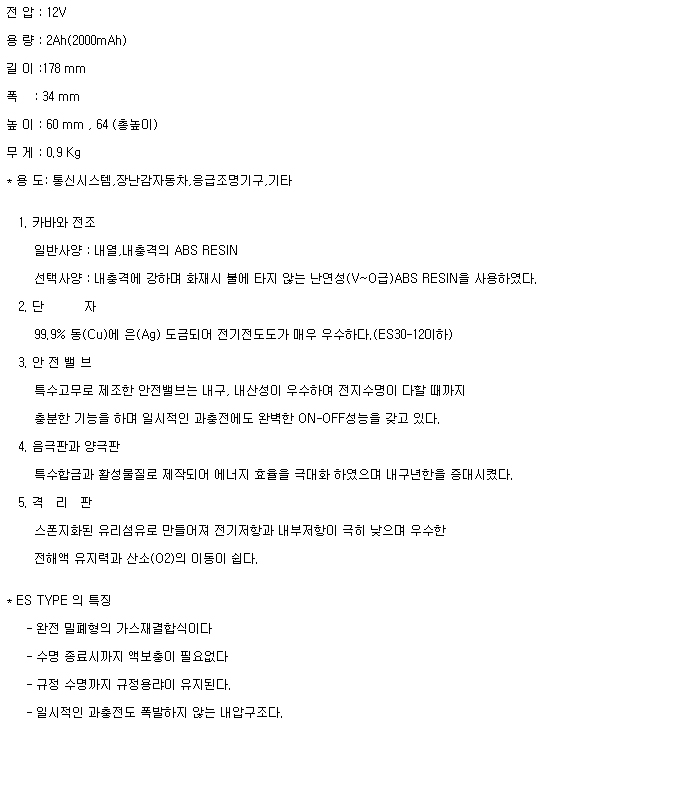 ³³ÃàÀüÁö/Rocket ES2-12(12V 2Ah)