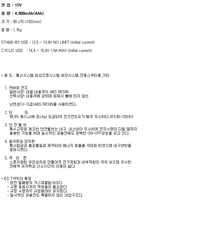 ³³ÃàÀüÁö/Rocket ES4-12(12V 4Ah)
