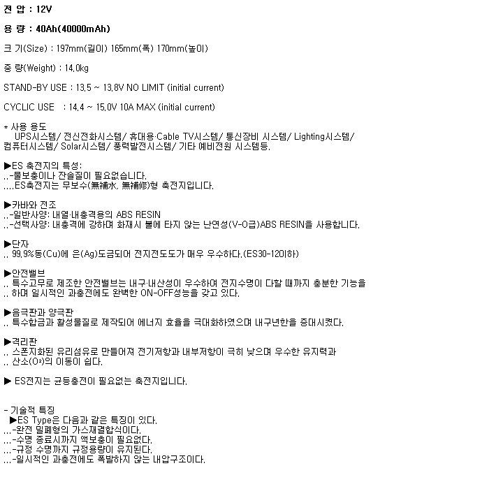 ³³ÃàÀüÁö/ES40-12(12V 40Ah)