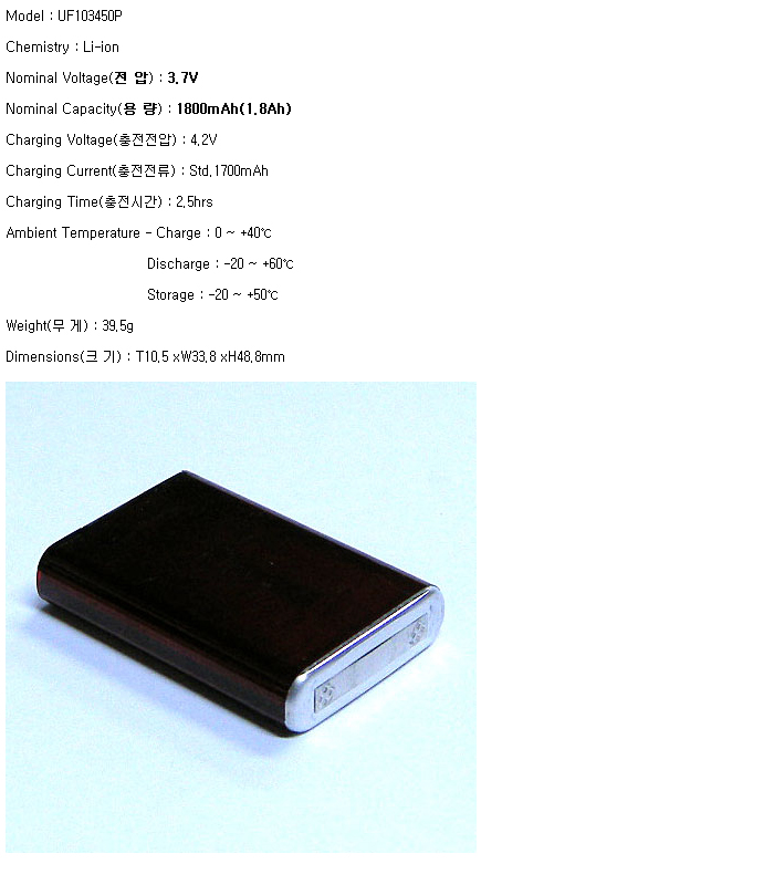 UF103450P(3.7V 1800mAh)