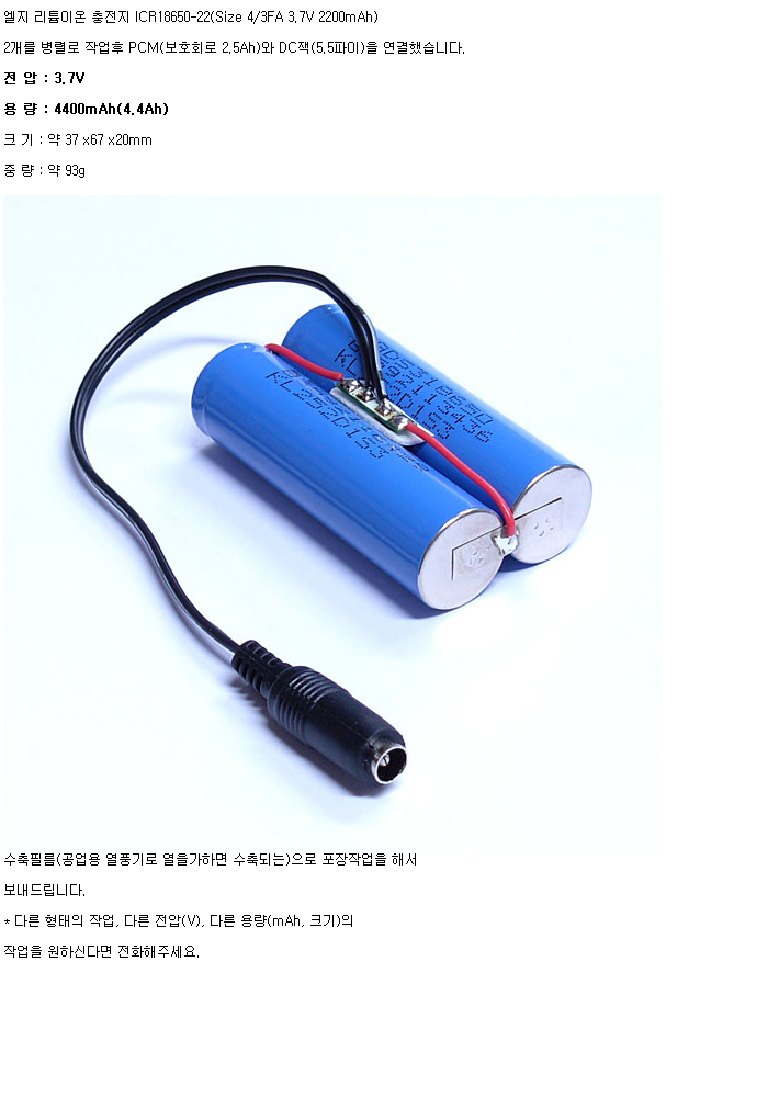 LG2N18650-22-R-1S2P-PCM(3.7V 4400mAh)J5.5FM