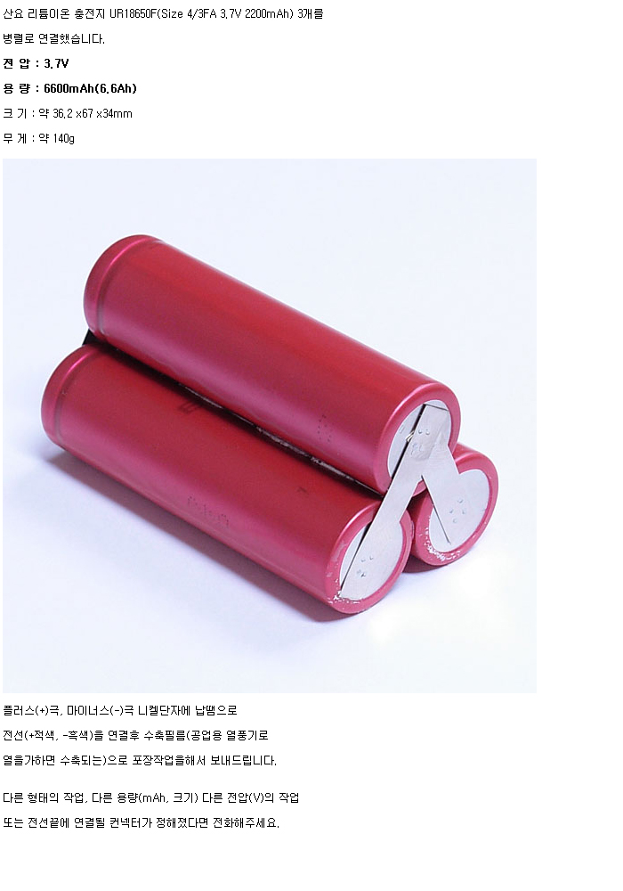 UR3N18650F-T-1S3P(3.7V 6600mAh)