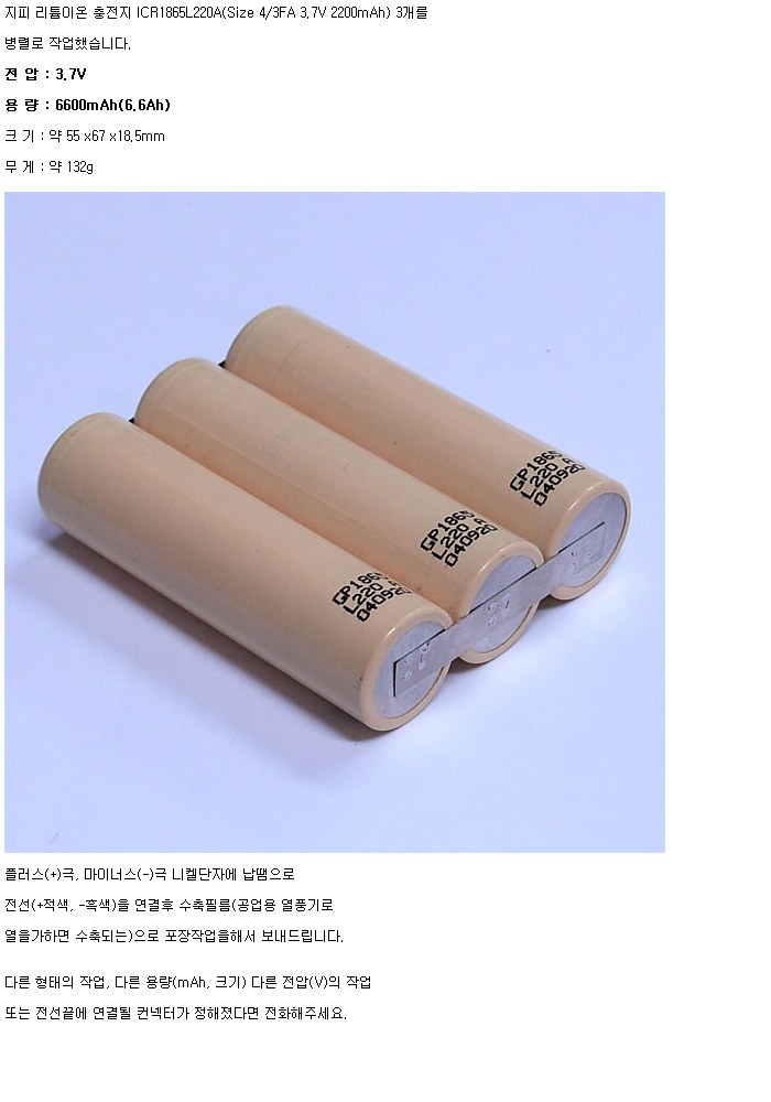 GP3N1865L220A-R-1S3P(3.7V 6600mAh):¼öÀÔÁß´Ü,ǰÀý!!