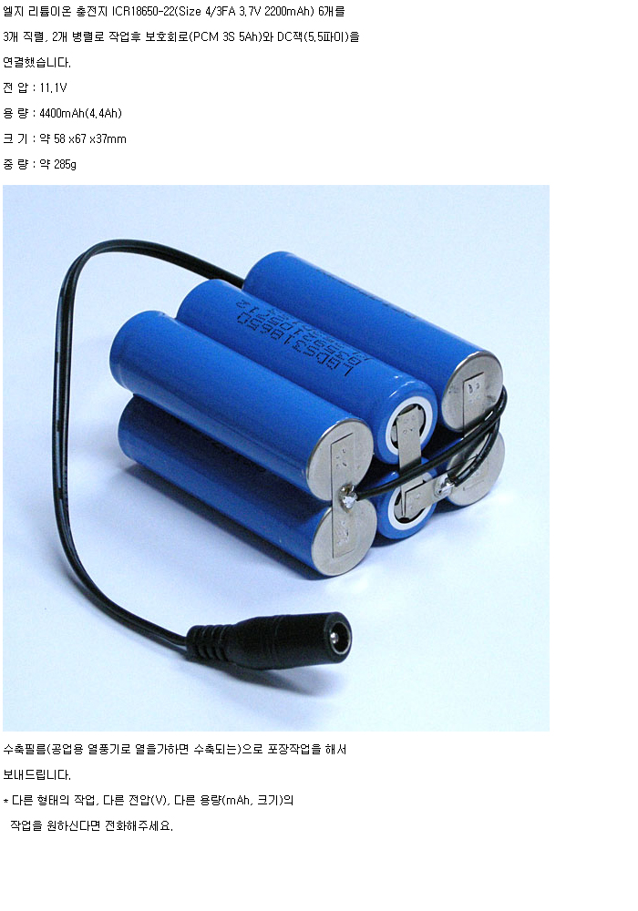 LG6N18650-22-2R-3S2P-PCM3S(11.1V 4400mAh)J5.5FM