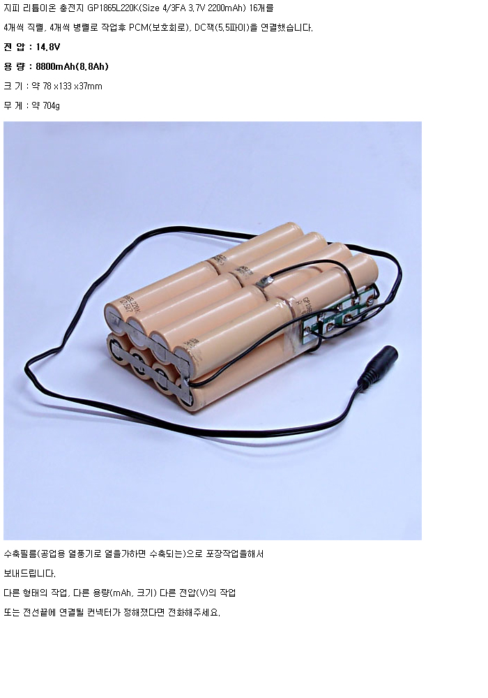 GP Lithium Ion GP16N1865L220K-2R2F-4S4P-PCM(14.8V 8800mAh)J5.5FM:¼öÀÔÁß´Ü,ǰÀý!!