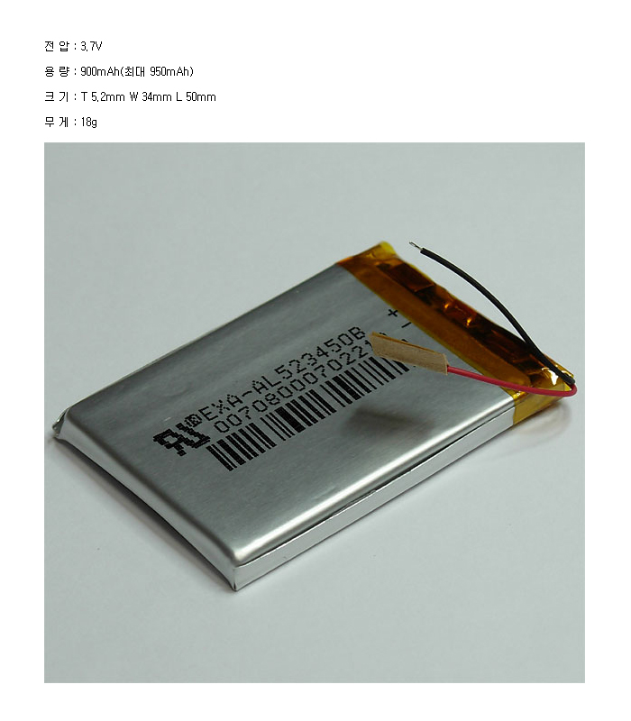 AL523450B-PCM(3.7V 950mAh)