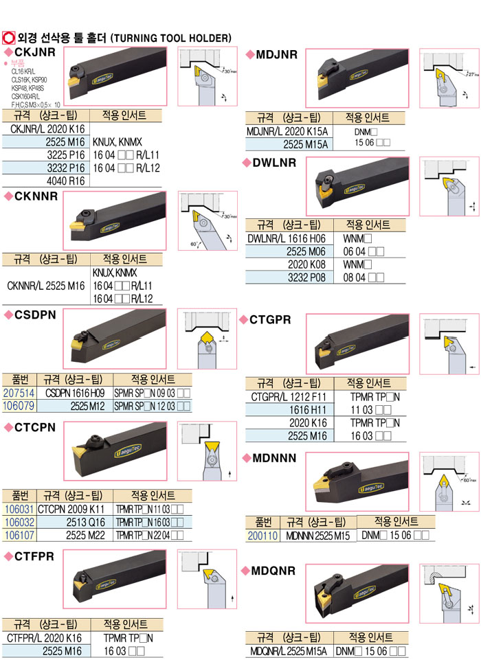 [´ë±¸ÅØ] ¿Ü°æ ¼±»è¿ë Åø Ȧ´õ (TURNING TOOL HOLDER) CKJNR/L 2020 K16 ~ CSDPN 2525 M12