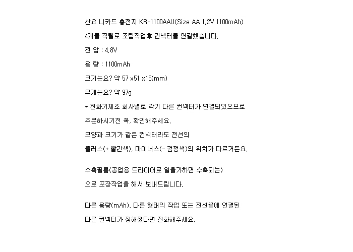 4KR1100AAU-R(4.8V 1100mAh)C5264RR