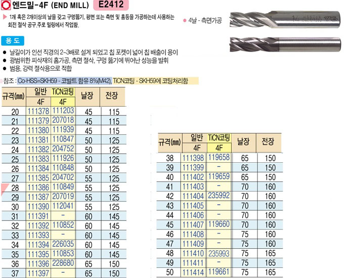 [YG]¿£µå¹Ð-4F(END MILL)TiCNÄÚÆÃ 46mm~50mm