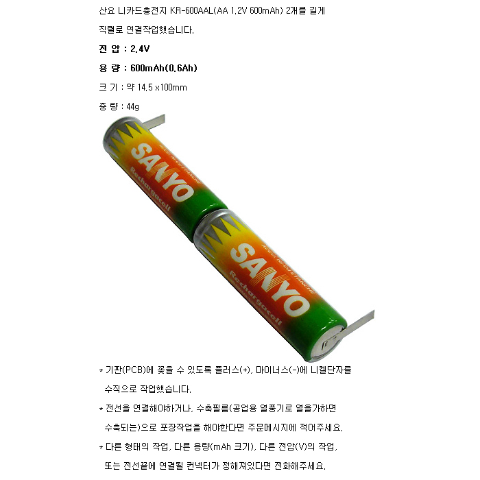 2KR600AAL-L(2.4V 600mAh)