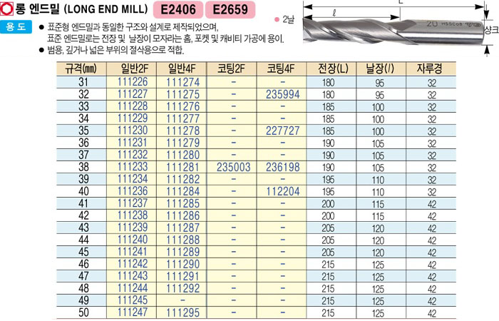 [YG]·Õ ¿£µå¹Ð(LONG END MILL)ÀϹÝ2F 41mm~50mm