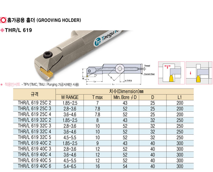 [´ë±¸ÅØ] Ȩ°¡°ø¿ë Ȧ´õ (GROOVING HOLDER) THR/L 619 32C 5 ~ THR/L 619 40C 6