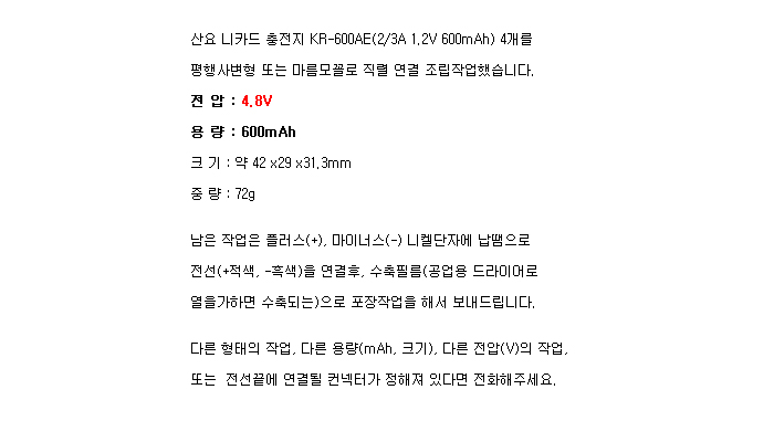 Sanyo SA4KR600AE-2RB(4.8V 600mAh)