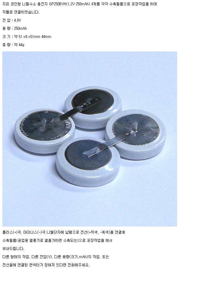 GP4N250BVH-SQ(4.8V 250mAh):¼öÀÔÁß´Ü,ǰÀý!!