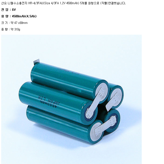 Sanyo SA5HR4/3FAU-Y(6V 4500mAh)