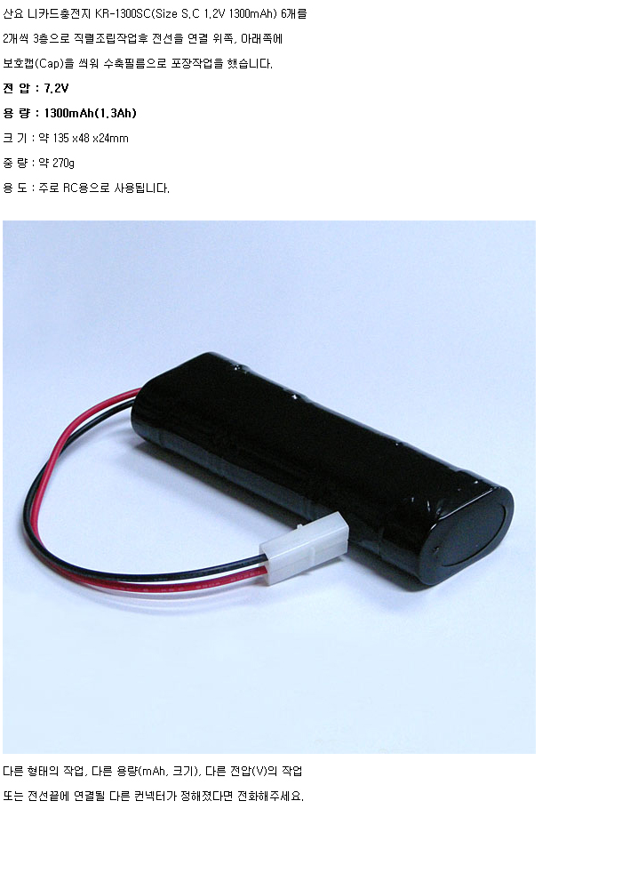 6KR1300SC-3F-Cap(7.2V 1300mAh)C271407FM-SRCB