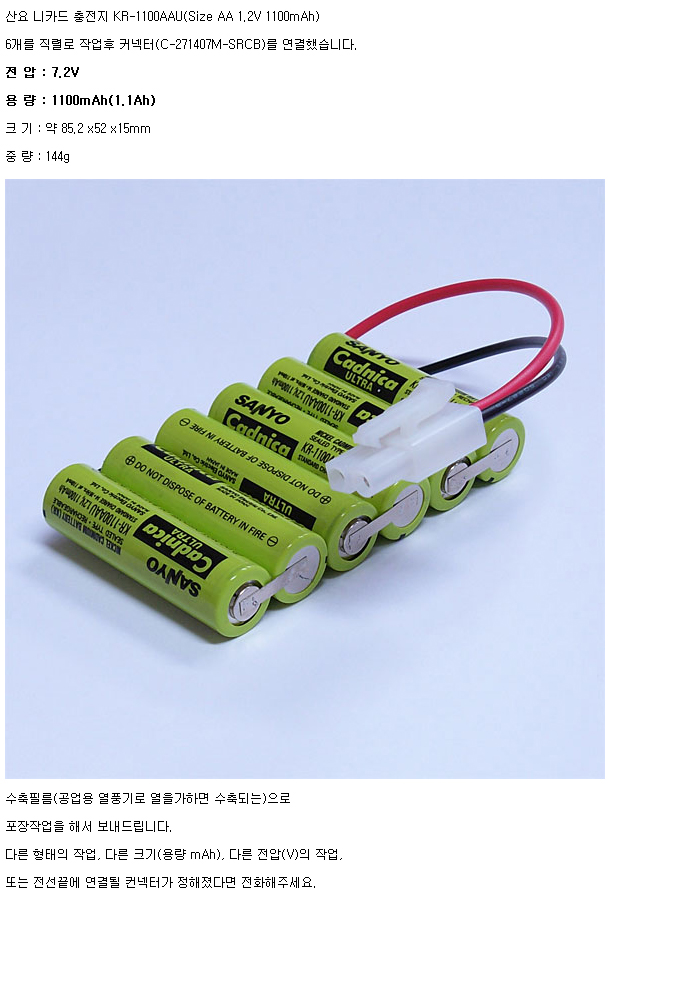 6KR1100AAU-R(7.2V 1100mAh)C271407M-SRCB