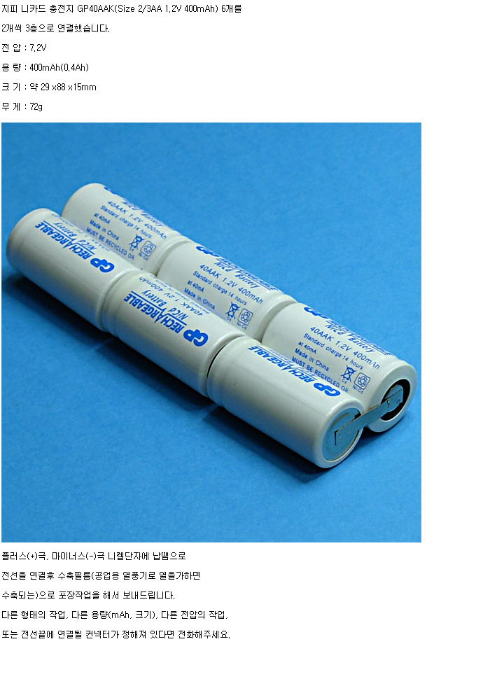 GP6N40AAK-3F(7.2V 400mAh):¼öÀÔÁß´Ü,ǰÀý!!