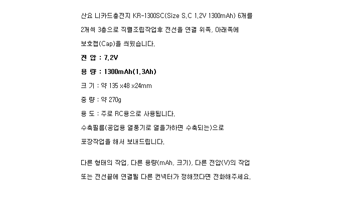 6KR1300SC-3F-Cap(7.2V 1300mAh)C271407FM-SRCB