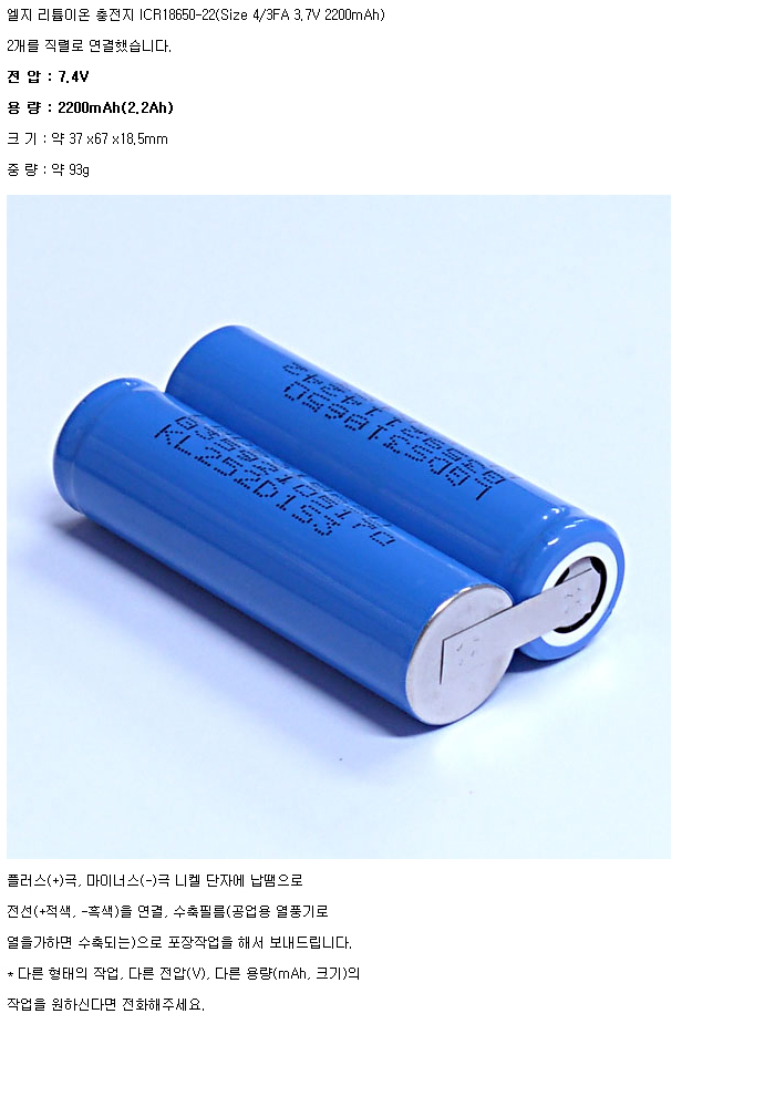 LG2N18650-22-R-2S1P(7.4V 2200mAh)