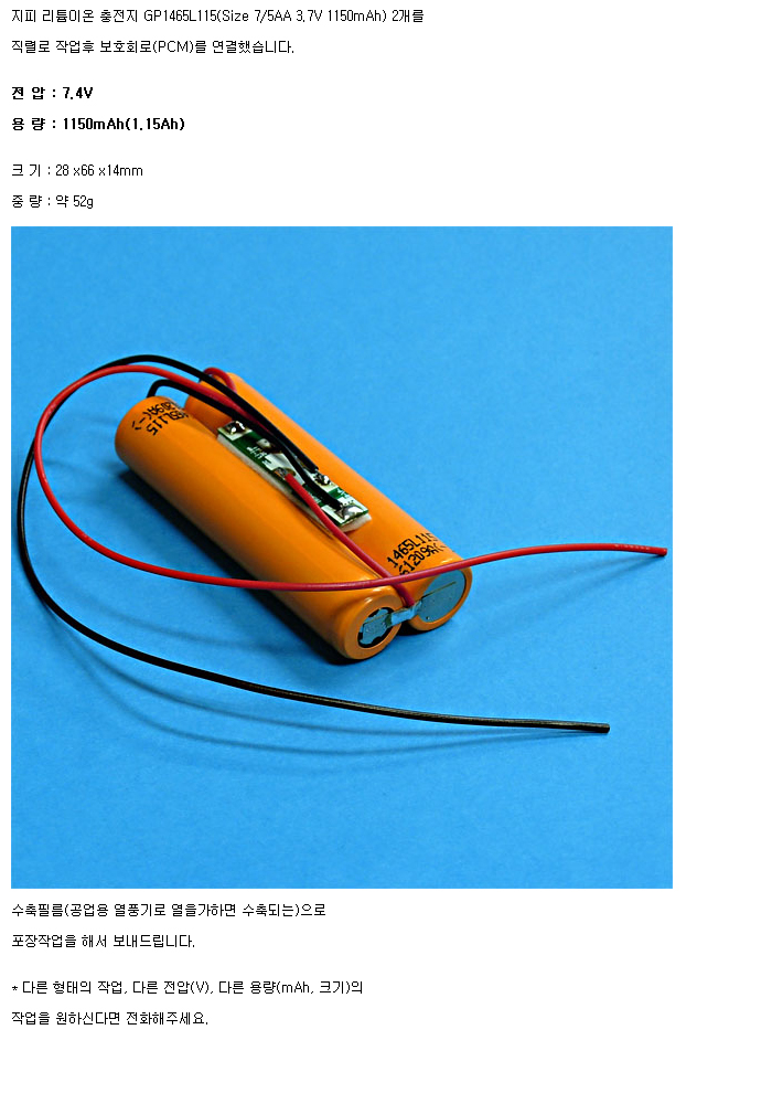 GP2N1465L115-R-PCM(7.4V 1150mAh):¼öÀÔÁß´Ü,ǰÀý!!