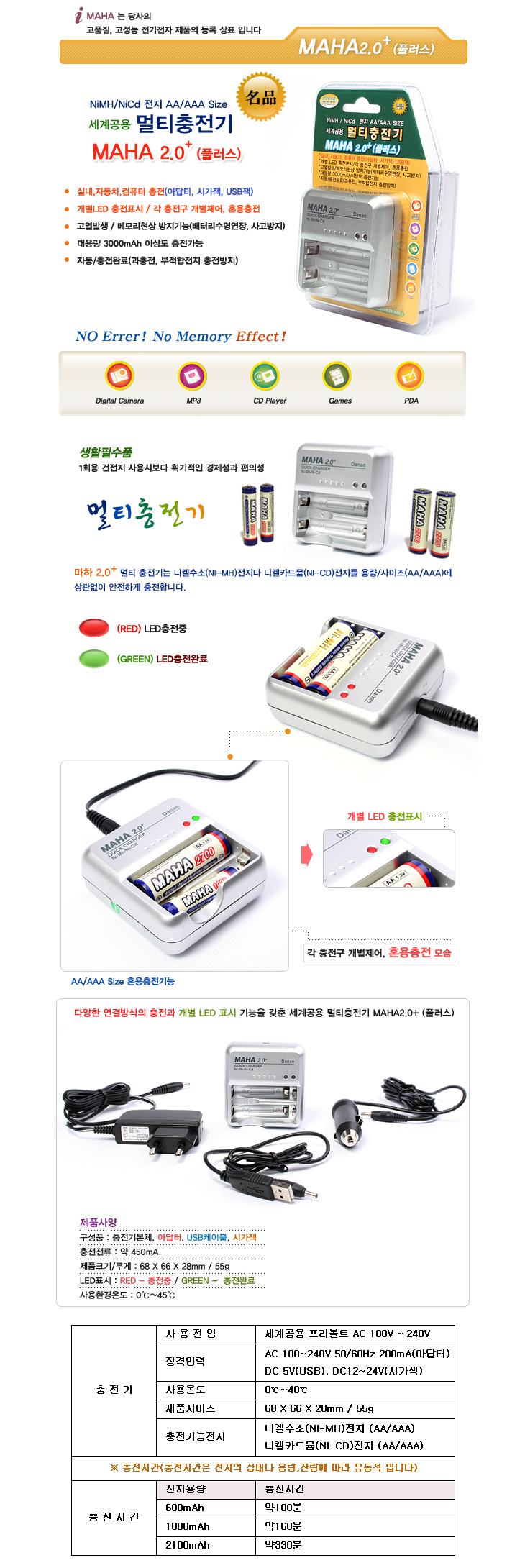 [¸¶ÇÏ] ´ÏÄ«µå/´ÏÄ̼ö¼Ò ¸ÖÆ¼ÃæÀü±â(Maha 2.0+ Ç÷¯½º, AA/AAAx2°³ ÃæÀü)(NiMH/NiCd)