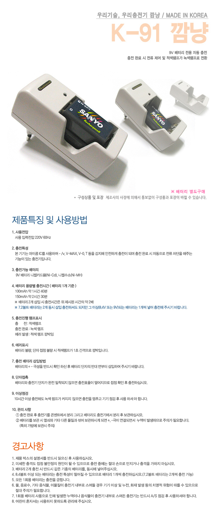 [±ô³É] ±ô³É ÃæÀü±â(K-91, ´ÏÄ«µå/´ÏÄ̼ö¼Ò, 9V ¹èÅ͸® ÃæÀü Àü¿ë)(¹èÅ͸®´Â Æ÷ÇÔµÇÁö ¾ÊÀ½)=>Á¦Ç°´ÜÁ¾!