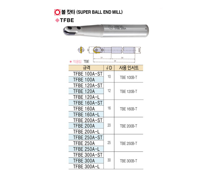 [´ë±¸ÅØ] º¼ ıŸ (SUPER BALL END MILL) TFBE 100A-ST ~ TFBE 160A-L=>Á¦Ç°´ÜÁ¾!