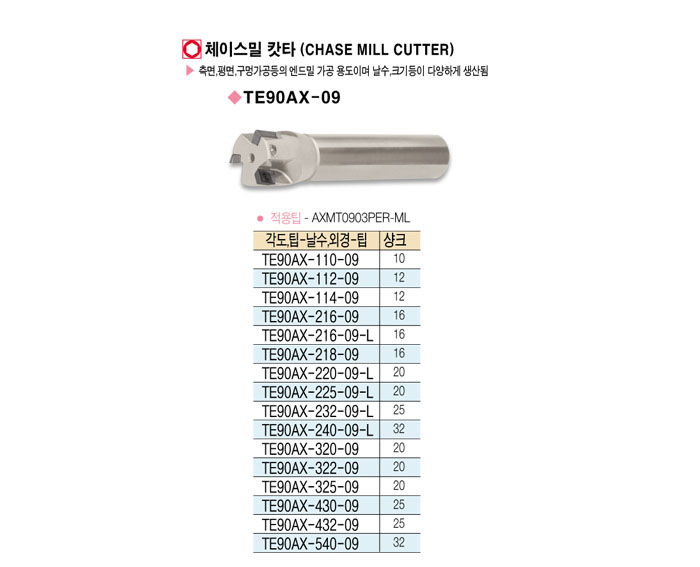 [´ë±¸ÅØ] üÀ̽º¹Ð ıŸ (CHASE MILL CUTTER) TE90AX-110-09 ~ TE90AX-225-09-L