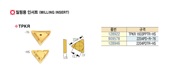 [À̽ºÄ«] ¹Ð¸µ¿ë Àμ­Æ® (MILLING INSERT) TPKR