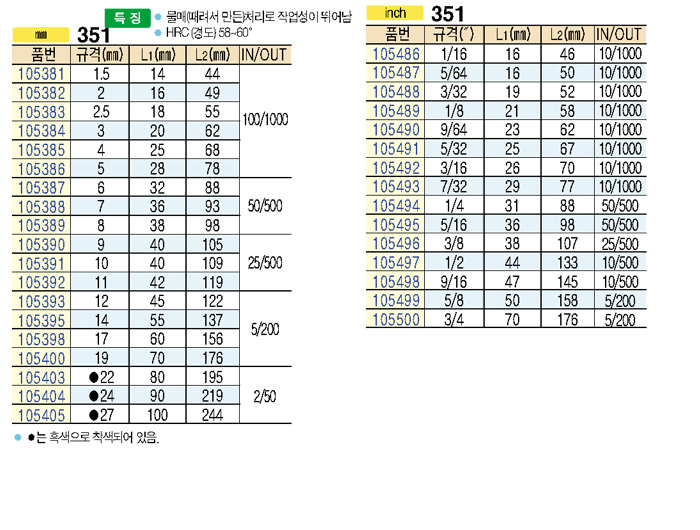[ÀÌÈ­]L·»Ä¡(L-WRENCH ) 351 1.5 mm ~ 9 mm
