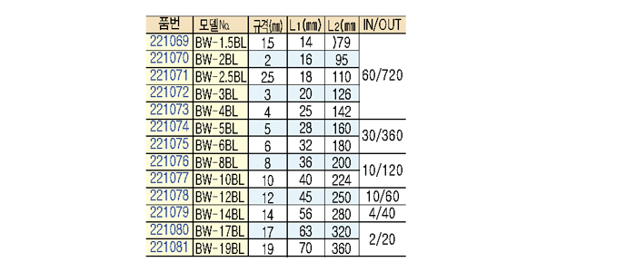 [º»´õ½º]·Õº¼ L-·£Ä¡(LONG BALL L-WRENCH) BW-1.5BL ~ BW-14BL (Èæ)