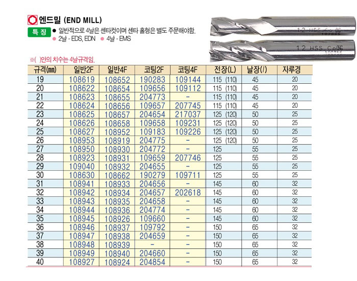 [OSG]¿£µå¹Ð(END MILL)ÀϹÝ4F 37mm~40mm