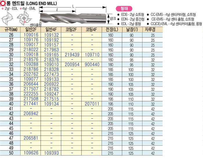 [OSG]·Õ ¿£µå¹Ð(LONG END MILL)ÄÚÆÃ2F 26mm~35mm