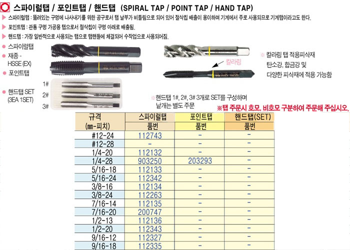 [YG]½ºÆÄÀÌ·²ÅÇ/Æ÷ÀÎÆ®ÅÇ/ÇÚµåÅÇ(SPIRAL TAP/POINT TAP/HAND TAP)Æ÷ÀÎÆ®ÅÇ 1/2-13~9/16-18