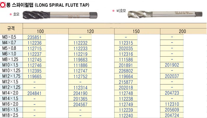 [YG]·Õ ½ºÆÄÀÌ·²ÅÇ(LONG SPIRAL FLUTE TAP)120 M3 x 0.5 ~ M12 x 1.25